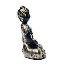Meditations Buddha, Antique Sort m. Guld - Lotus Blomster på dragten